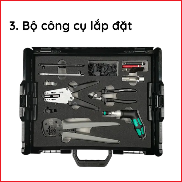 ♦ Bộ công cụ lắp đặt giúp thực hiện các thao tác cắt, tuốt, bấm cos và đấu nối chuẩn xác.