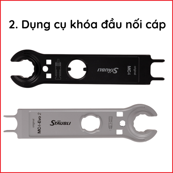 Đầu nối MC4 của Stäubli, với phiên bản hiện tại là MC4-Evo 2A, đảm bảo kết nối điện ổn định, chống chịu được các điều kiện môi trường khắc nghiệt như thay đổi nhiệt độ, độ ẩm cao, tia UV và nguy cơ ăn mòn. Việc sử dụng đầu nối MC4 chính hãng giúp giảm thiểu rủi ro hồ quang điện và duy trì hiệu suất năng lượng tối ưu trong suốt vòng đời dự án.
